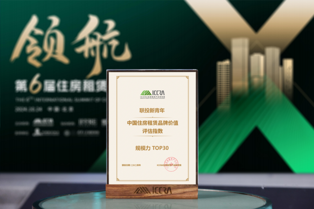 会上颁布“2024中国住房租赁品牌价值排名”,“联投新青年”品牌入围中国住房租赁品牌价值评估指数规模力TOP30、中国住房租赁品牌价值评估指数成长性TOP30、中国住房租赁品牌价值评估指数青年公寓TOP30三大奖项。
