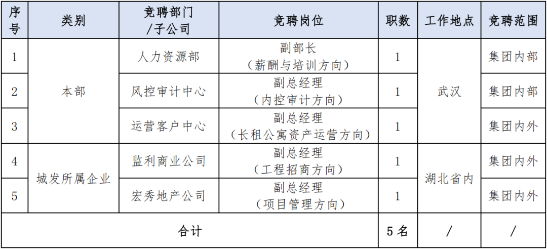 【已结束】招贤纳才|湖北省住房保障建设管理有限公司中层管理岗位公开竞聘公告